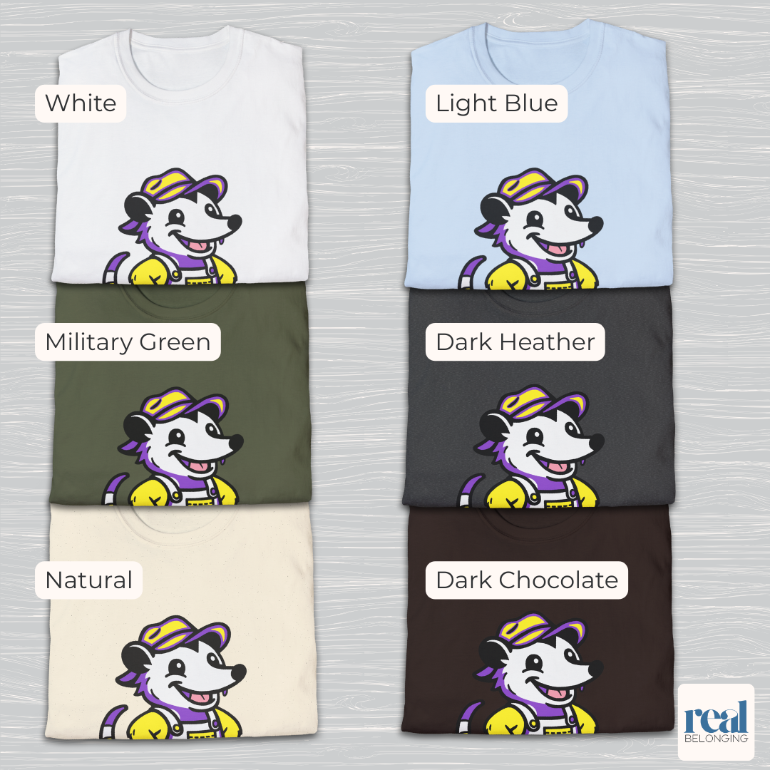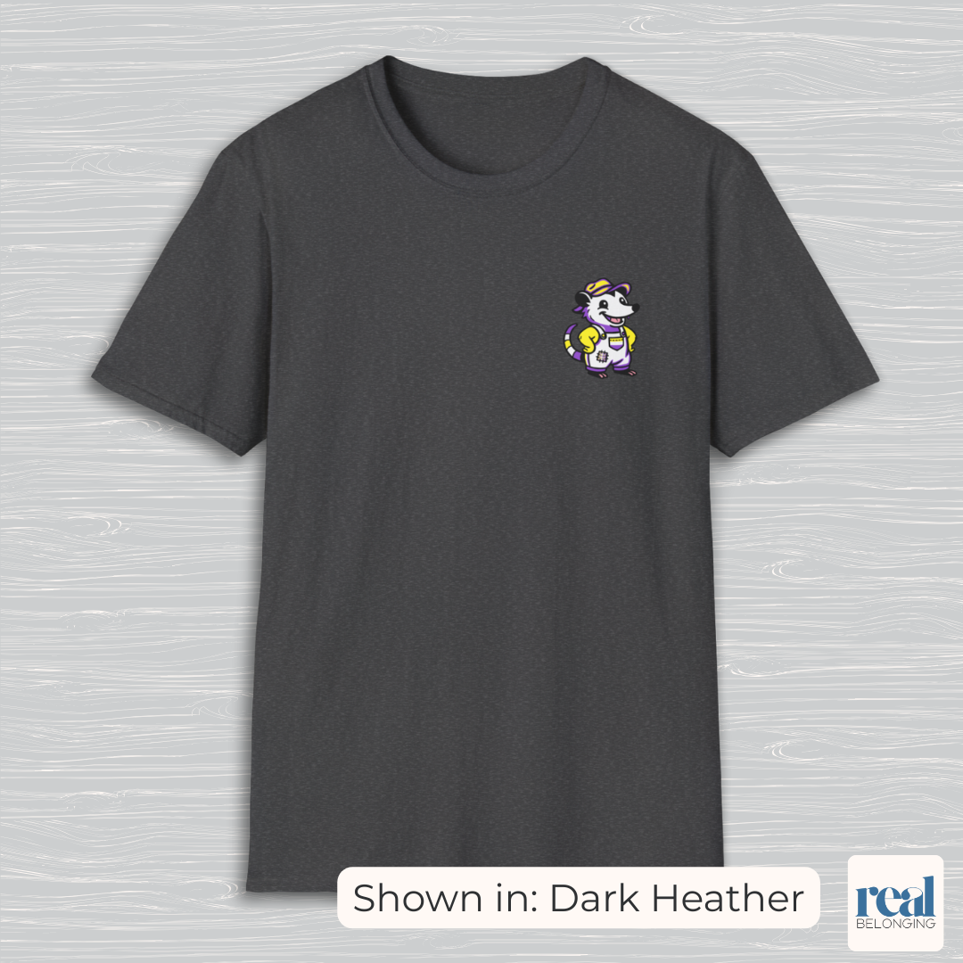Soft, durable, and perfect for Pride events or everyday wear, this possum is proof that non-binary joy belongs everywhere — even down home in the holler.