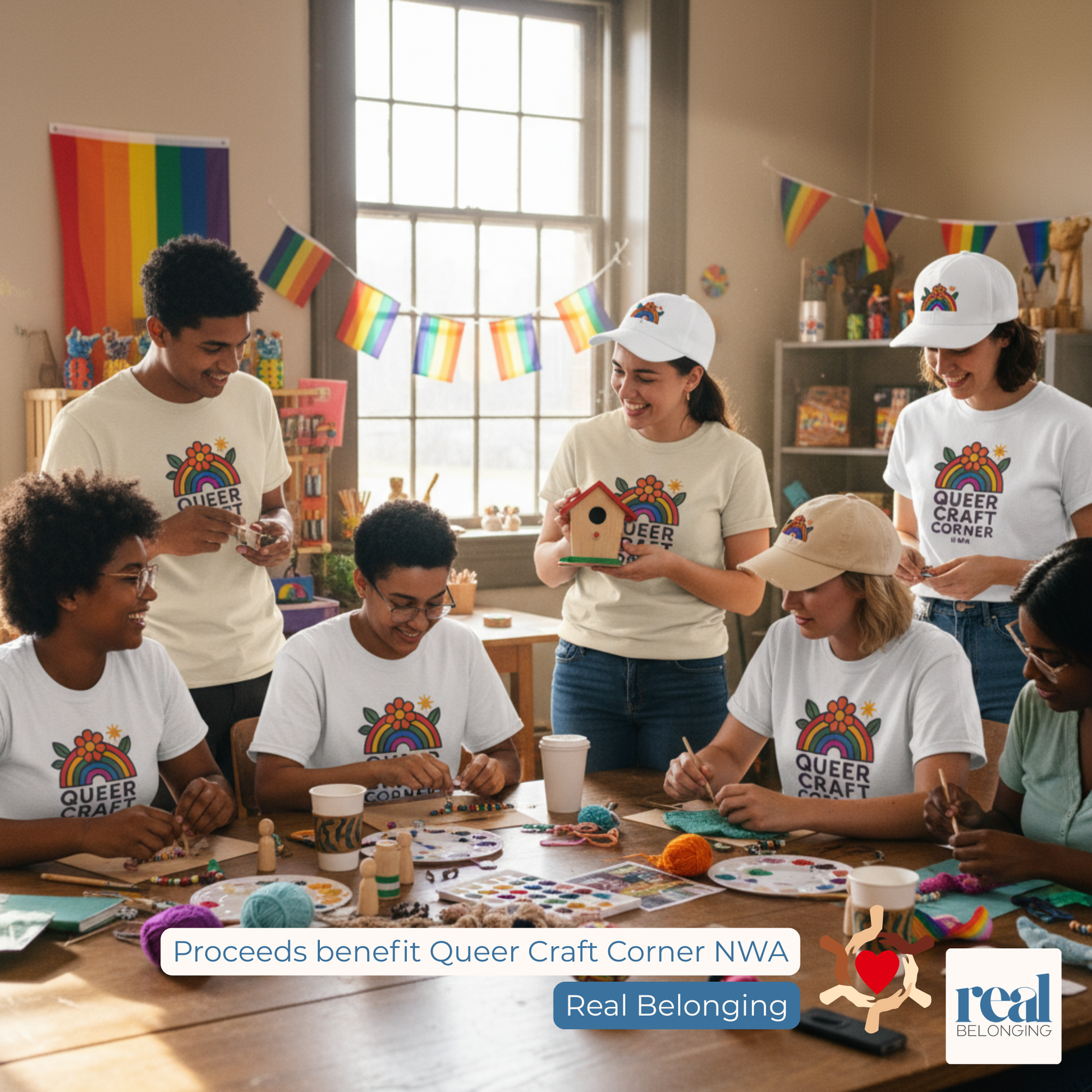 Elevate your everyday look with our Queer Craft Corner NWA × Real Belonging gear from the Community Care collection, available in two colors to suit your vibe. Proceeds support Queer Craft Corner NWA's community events!