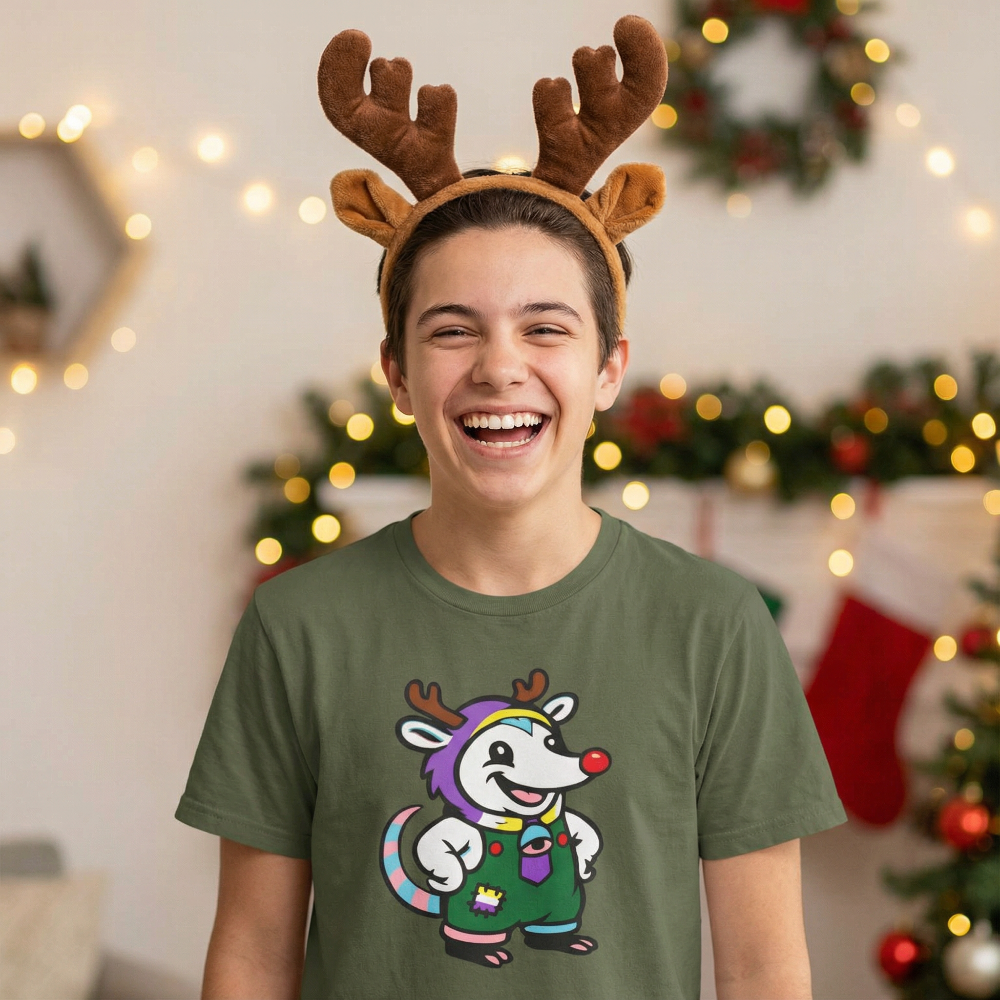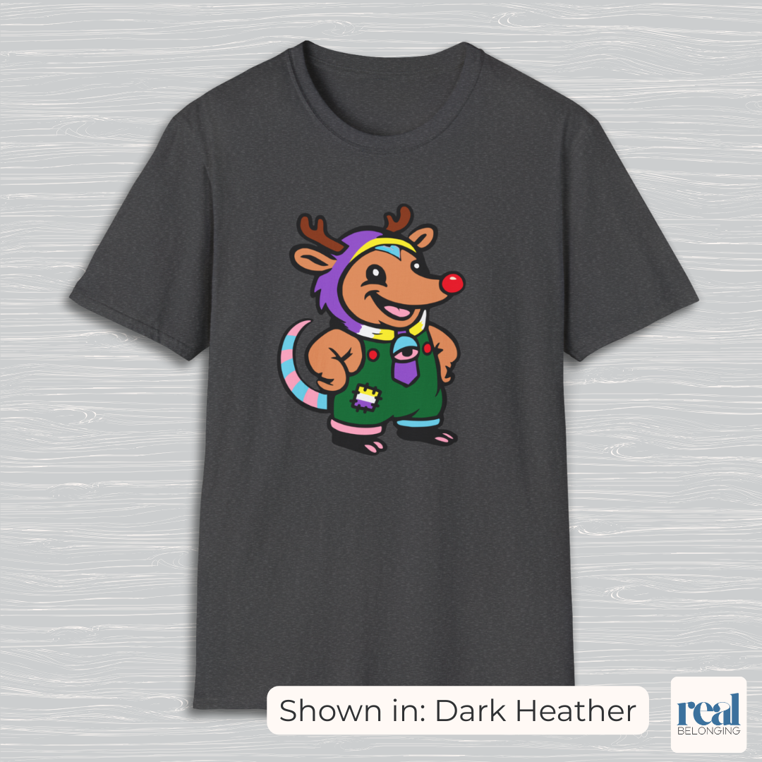 Celebrate all things cozy, queer, and wonderfully you with our Adorable AF Non-Binary Reindeer Possum Tee — a soft, breathable shirt with 100% ring-spun cotton that brings joy to every season. Featuring a non-binary possum in overalls and reindeer antlers, this design is for anyone who embraces cuteness, chaos, and real belonging.