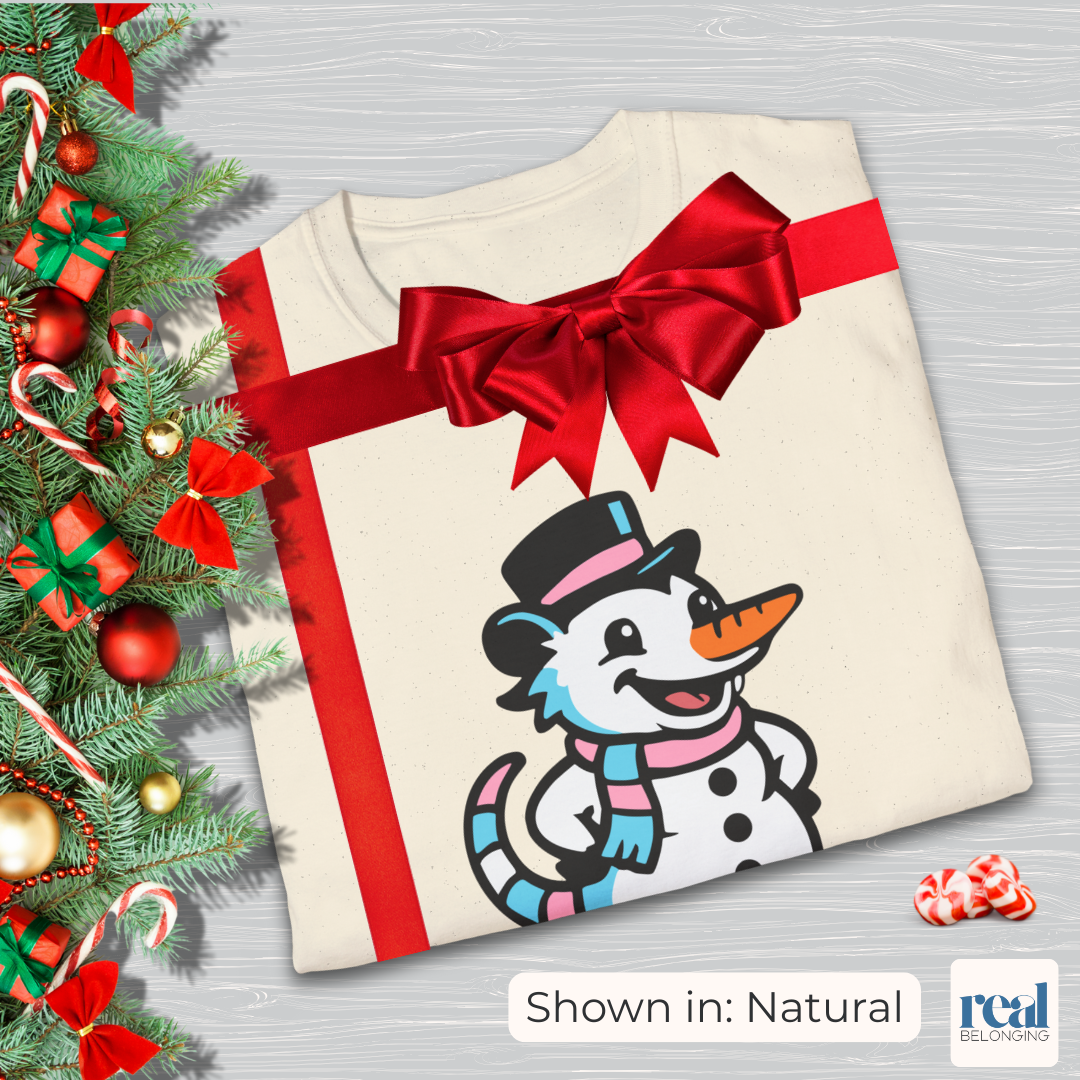 This snowperson shows up in transgender pride colors as a symbol of becoming, resilience, and self-recognition amidst the cold. A soft, affirming celebration of trans pride, visibility, and the courage it takes to build yourself into exactly what you are.