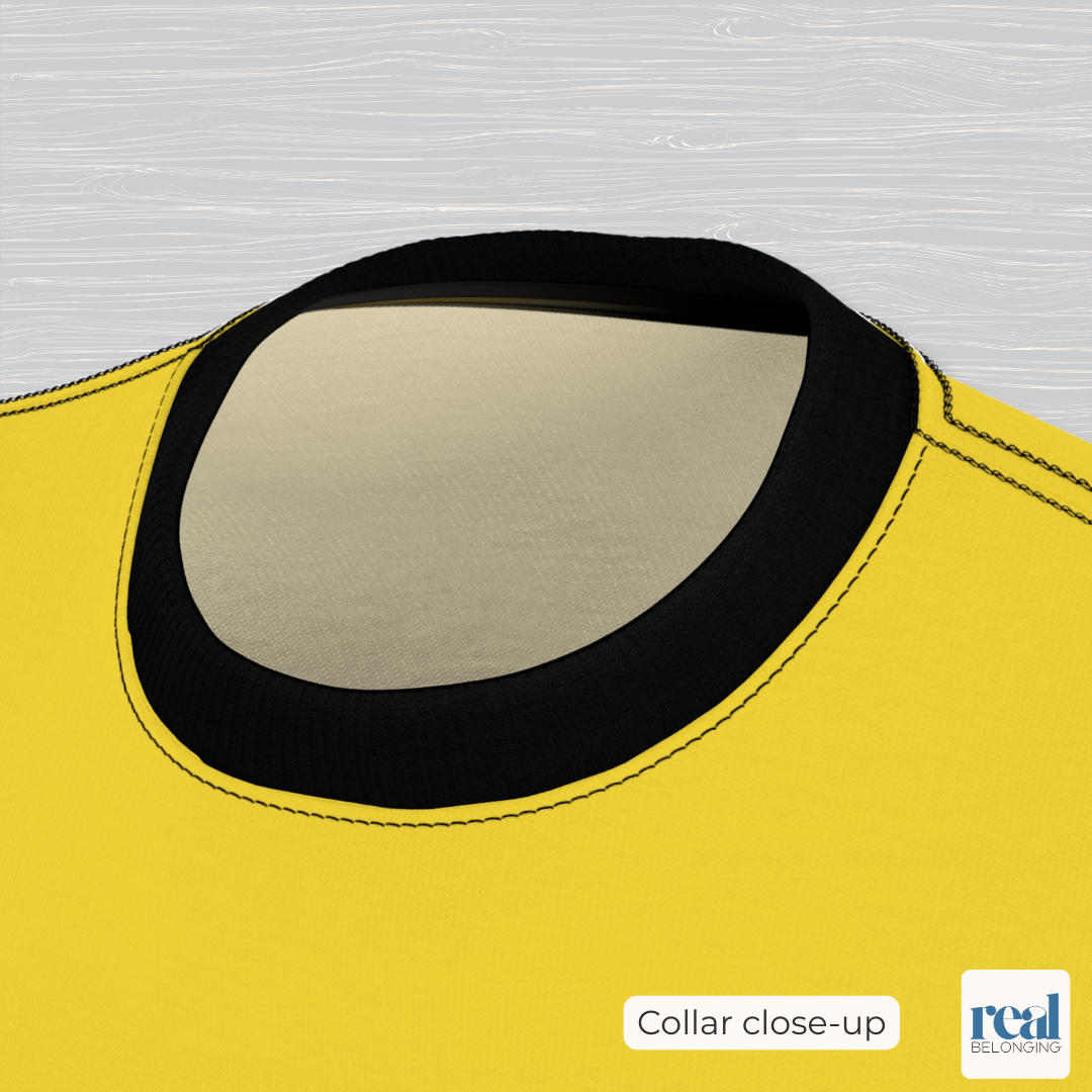 This shirt is for people who want their pronouns visible without being loud, playful without being a joke, and affirming without asking for permission. Featuring pride flag colors printed across the entire shirt, this design wraps you in whole-chested affirmation.